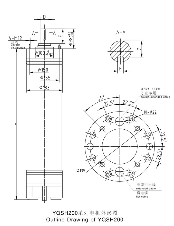 概述 YQSH系列潛海水三相異步電動機(jī)為充水密封型三相異步電動機(jī),是在引進(jìn)德國里茨公司技術(shù)基礎(chǔ)上研發(fā)的新產(chǎn)品,主要用于海上平臺驅(qū)動潛水泵提取海水、有腐蝕的液體介質(zhì)、也可以在含氯離子較多的水質(zhì)中使用。電動機(jī)的導(dǎo)軸承、止推軸承等重要零部件均采用了新型結(jié)構(gòu)和新材料,在密封和防腐方面都采用了一系列特殊設(shè)計,具有機(jī)構(gòu)簡單、運(yùn)行可靠、使用壽命長、維修方便、力能指標(biāo)高等優(yōu)點。