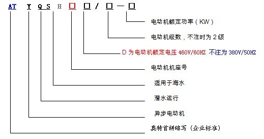 概述 YQSH系列潛海水三相異步電動機為充水密封型三相異步電動機,是在引進德國里茨公司技術(shù)基礎上研發(fā)的新產(chǎn)品,主要用于海上平臺驅(qū)動潛水泵提取海水、有腐蝕的液體介質(zhì)、也可以在含氯離子較多的水質(zhì)中使用。電動機的導軸承、止推軸承等重要零部件均采用了新型結(jié)構(gòu)和新材料,在密封和防腐方面都采用了一系列特殊設計,具有機構(gòu)簡單、運行可靠、使用壽命長、維修方便、力能指標高等優(yōu)點。 型號說明